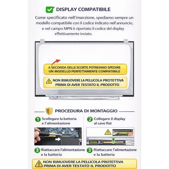 - IL CODICE DEL DISPLAY INVIATO E' COMPATIBILE CON IL CODICE PRESENTE NEL TITOLO DELL'INSERZIONE